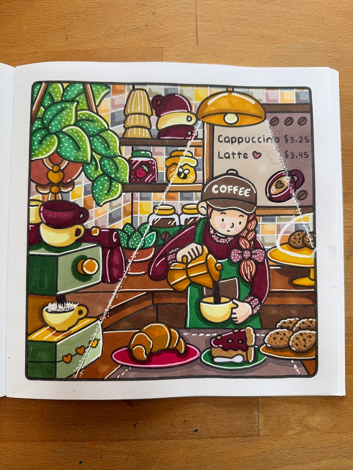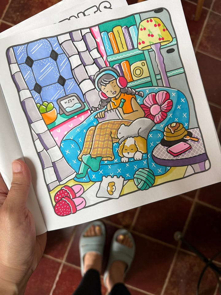 Last week I hit a big milestone in my (guiltiest?) pleasure: I admitted to my friend Corrina just how into coloring I am. I even showed her some of my “pages.” Is this hobby embarrassing? Maybe. Could I use this time to write, clean, cook, work? Absolutely. But coloring relaxes me. And it’s (sort of?) creative. I am now knee-deep in Coco Wyo coloring content on IG and I am not mad about it.