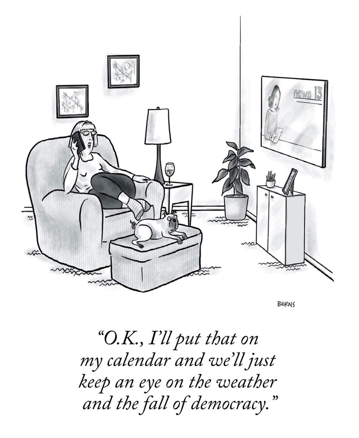 The whole book is astounding and funny and relatable, but this specific theme around political complacency and how much *worse* things continue to get stuck out to me.
