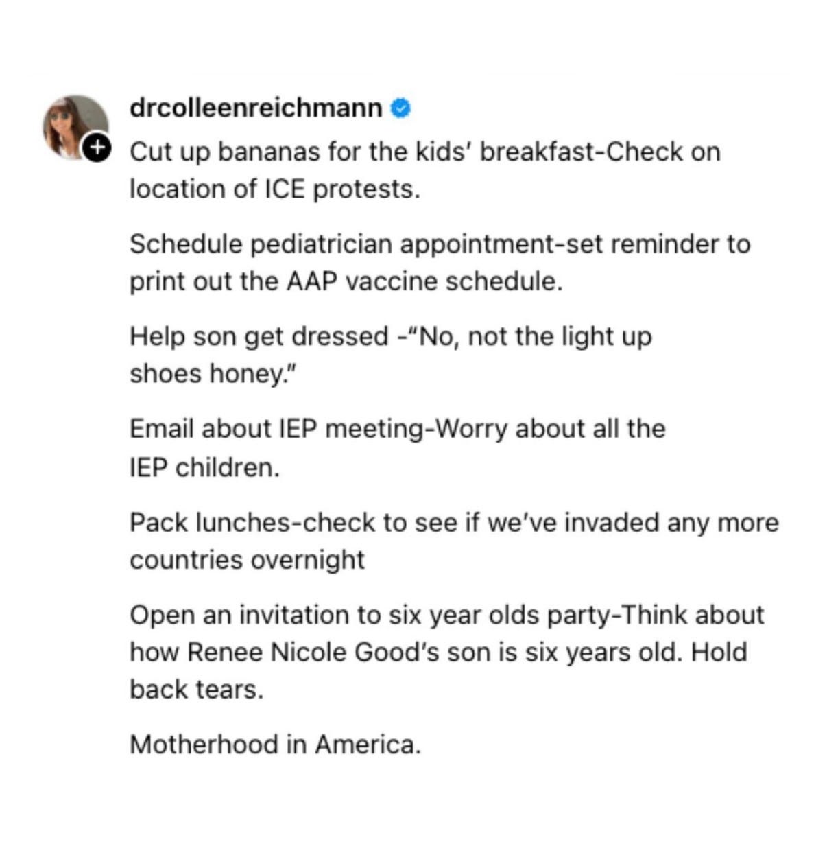I’m not an activist or pundit or strategist. Just a mom living in Minneapolis who doesn’t want anyone to be abducted by the government or separated from their families. That’s literally it.