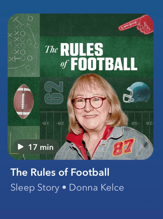 Yaâll the pandering of this sleep story to Swifties is just plain offensive. Iâm not falling for it, Donna (and sorry but listening to an elite athleteâs mom talk about anything could not possibly be calming). Plus, football is not boring or relaxing! Did you catch that wild-ass hail mary throw during the Commanders/Bears game the other week? Get out of here.