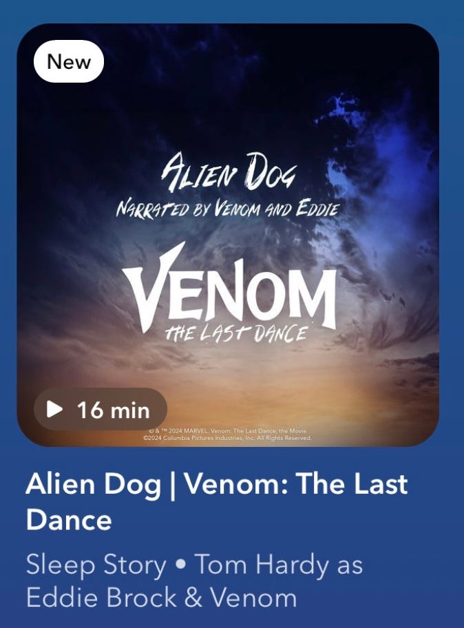Ahh, yes, let me fall asleep to the soothing sounds of a Marvel Villain. Iâm all in on Tom Hardy doing pretty much anything, but this shit cracks me up. Who is this being marketed to? Anxious elder millennial dads who need a distraction from their big work presentation the next day?