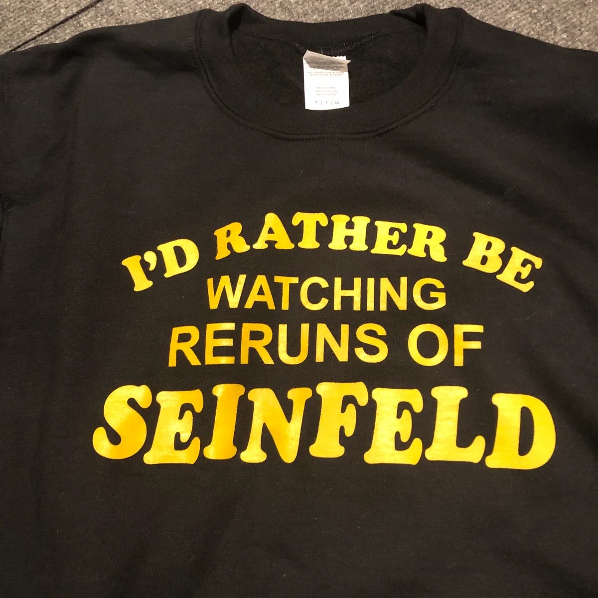I started using the Calm app to fall asleep a year ago, after Brad shamed me for only being able to fall asleep to the soothing sounds of Seinfeld reruns coursing through my AirPods. He mocked me by wondering if there could be a louder, more obnoxious show to try to fall asleep to (and then he bought me this sweatshirt last Hanukkah: