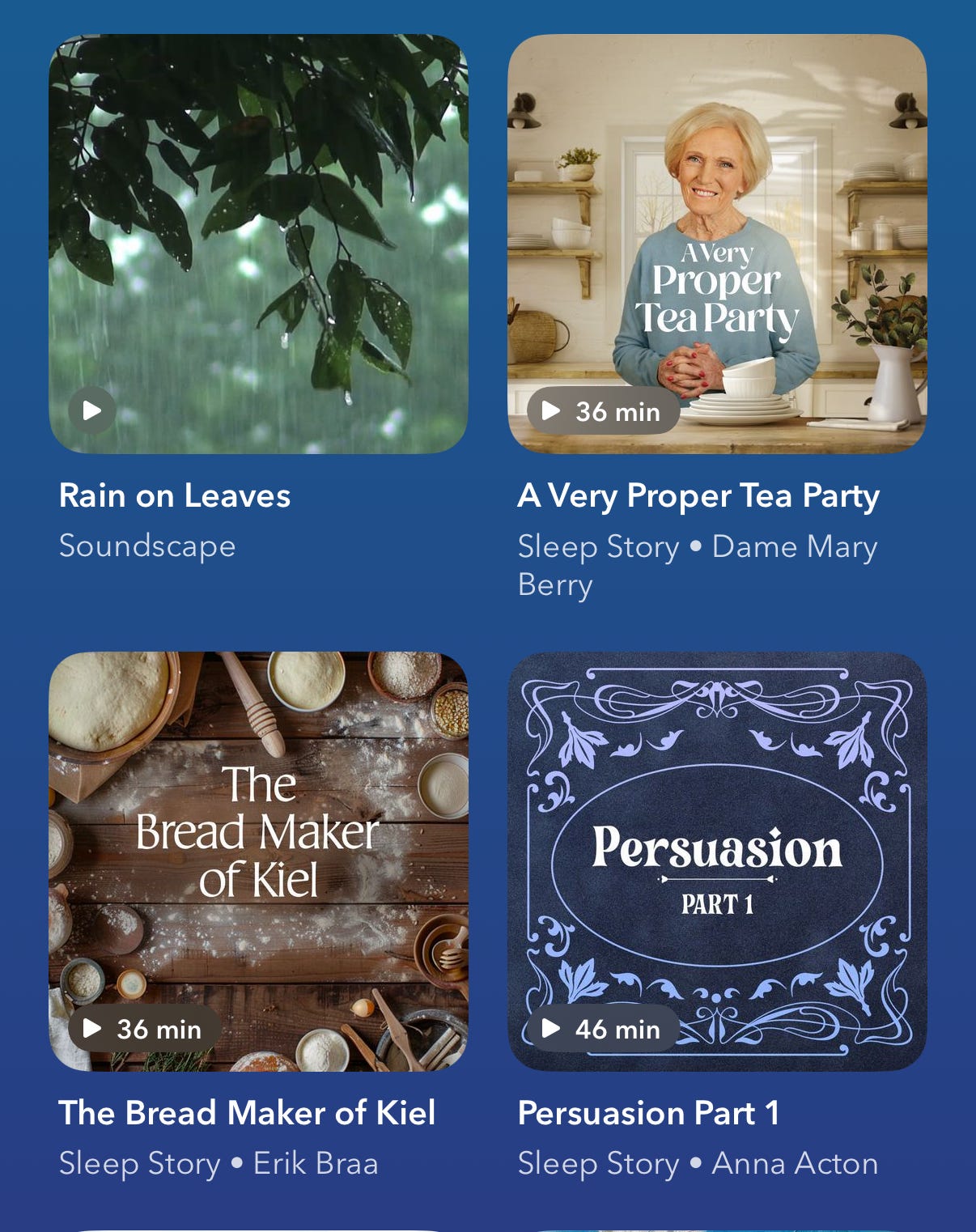 But Iâve found some solid sleep stories on the app that I really enjoy (especially after the last couple hellish weeks). Iâve realized that the key is to find a topic Iâm vaguely into but not SOOOO interested in that it distracts me and gets me overly invested and coming up with a million questions to later research.