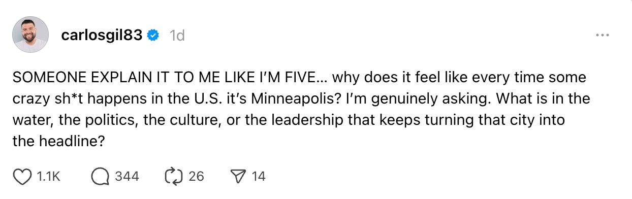 Minneapolis isn’t always the headline because it’s broken. It’s the headline because people here are educated enough, organized enough, and principled enough to refuse to look away. For better or worse, Minneapolis is now a symbol.